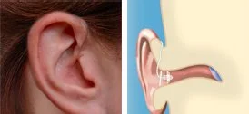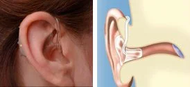 These hearing aids consist of small housing that sits behind the ear, with a very fine, clear tube running over the top of the ear, into the ear. This results in an open design without a "plugging" of the ear. Although similar to behind-the-ear (BTE) hearing aids, these are smaller and more discreet than traditional BTEs.